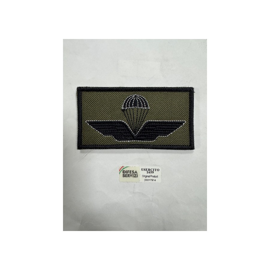Brevetto civile da paracadutista verde militare in cordura con velcro 8,5 cm x 4,5 cm.