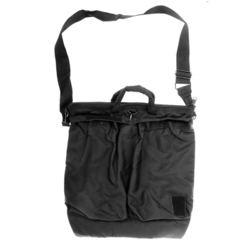 Borsa portacasco in nylon, chiusura superiore con cerniera. Dotata di cintura tracolla regolabile e sganciabile dalla borsa tramite due moschettoni E´ dotata di due capienti tasche anteriori con chiusura a velcro e bottone più due ulteriori taschini laterali interni senza chiusura. Nell´interno è presente una imbottitura molto leggera. Questa borsa è utilizzata dai piloti NATO europei come custodia per il casco di volo, carte, documenti e quant´altro viene utilizzato durante le missioni. Nel normale uso operativo i piloti utilizzano la borsa per inserirci il casco di volo e altro materiale utile alla missione, trasportando il tutto come una valigetta dalla sala briefing direttamente alla linea di volo, prima di prendere posto a bordo dell´aeromobile. Questa borsa è un comodo contenitore per qualsiasi genere di pilota, dal volovelista al pilota a motore. Può contenere tutto il normale equipaggiamento da volo ed è utilissima anche come borsa per computer portatile. Misura della borsa (distesa come nell´immagine sottostante) larghezza per altezza: 45 x 47 cm.