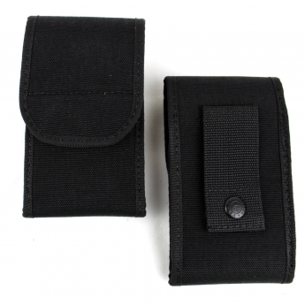 Porta cellulare in cordura con passanti per cinturoni alti fino a 6 cm. Lunghezza 15 cm, larghezza 8,5 cm. Chiusura pattina regolabile con velcro. Con tessuto elastico laterale. Colore nero. Prodotto in Italia.