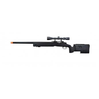 Fucile da sniper a molla potenza di tiro 0,99 Joule . Canna in metallo, meccanismi di scatto in metallo.Funzionamento bolt action a ripetizione. Sistema hop-up regolabile.